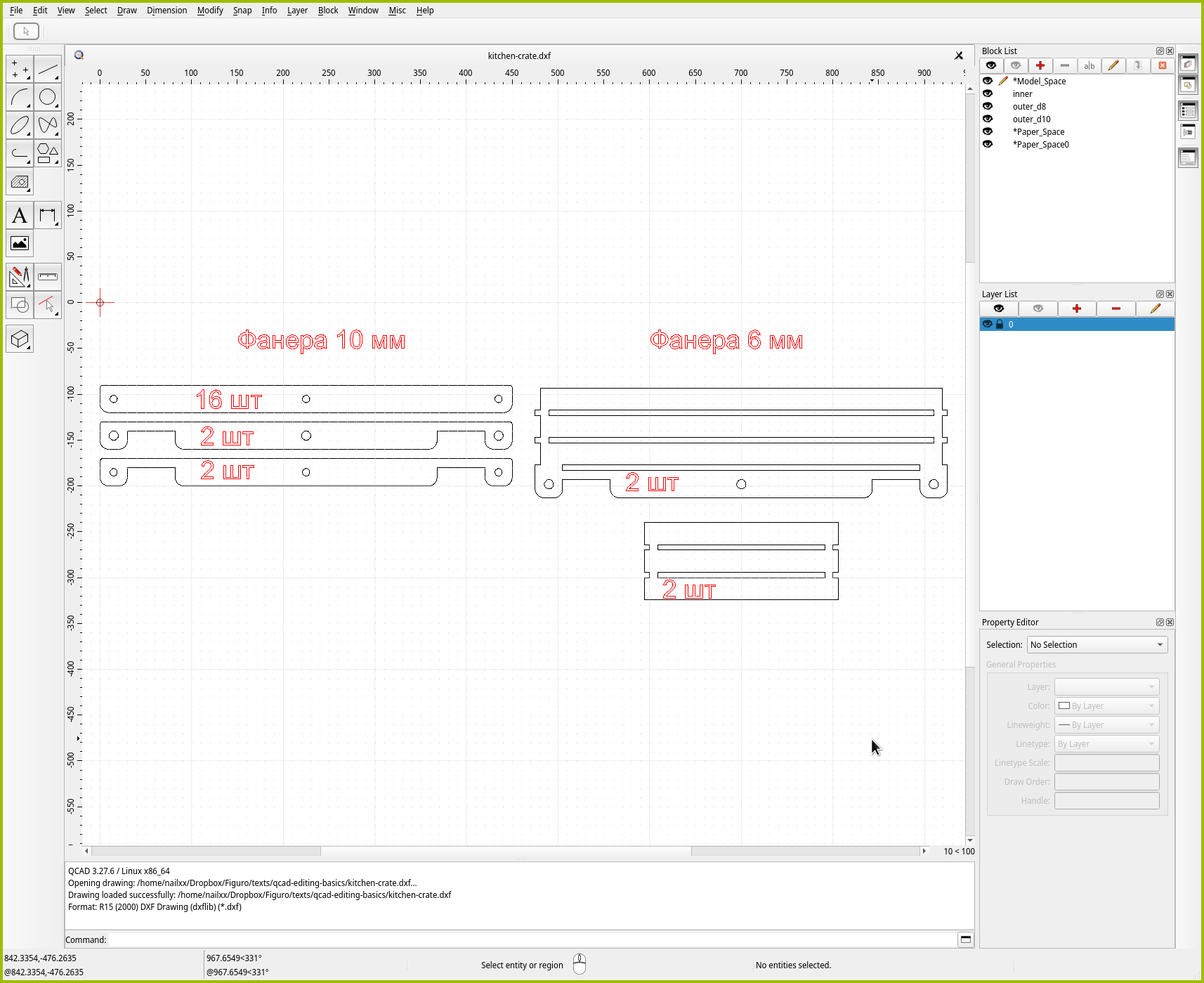 Итак, предположим, у нас есть исходный макет под лазерную резку kitchen-crate.dxf, который в итоге должен превратиться в хитроумный ящик на роликах.