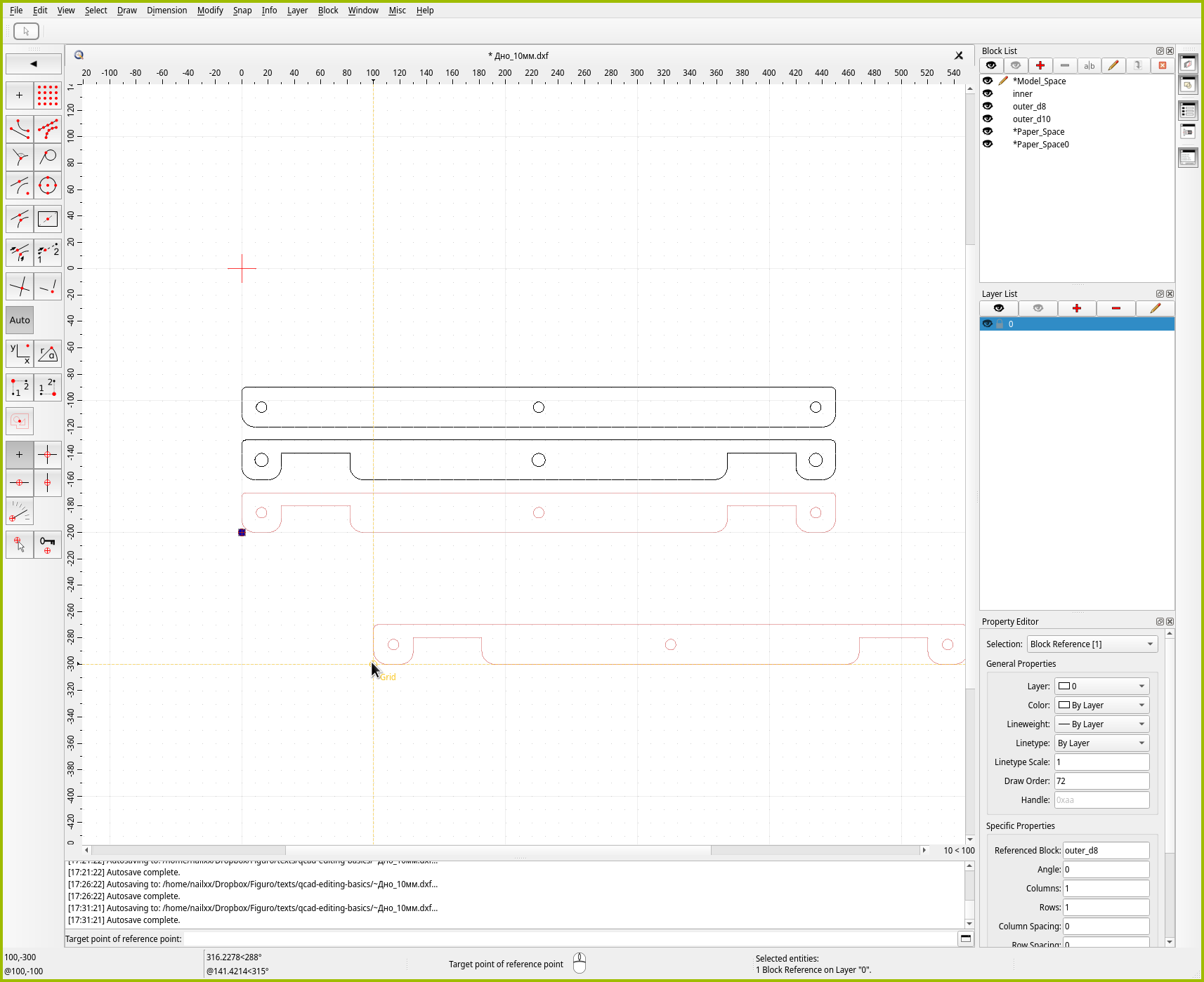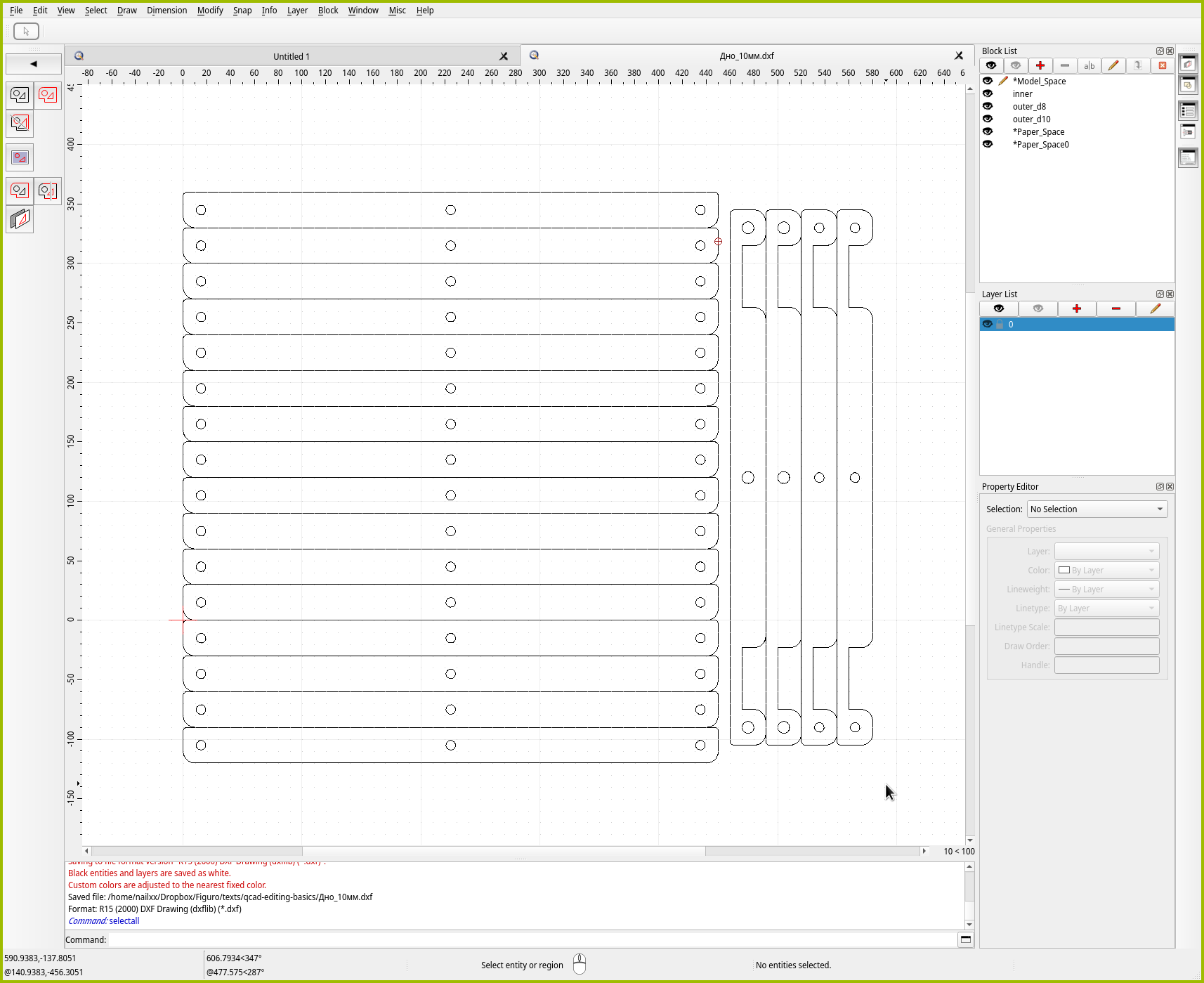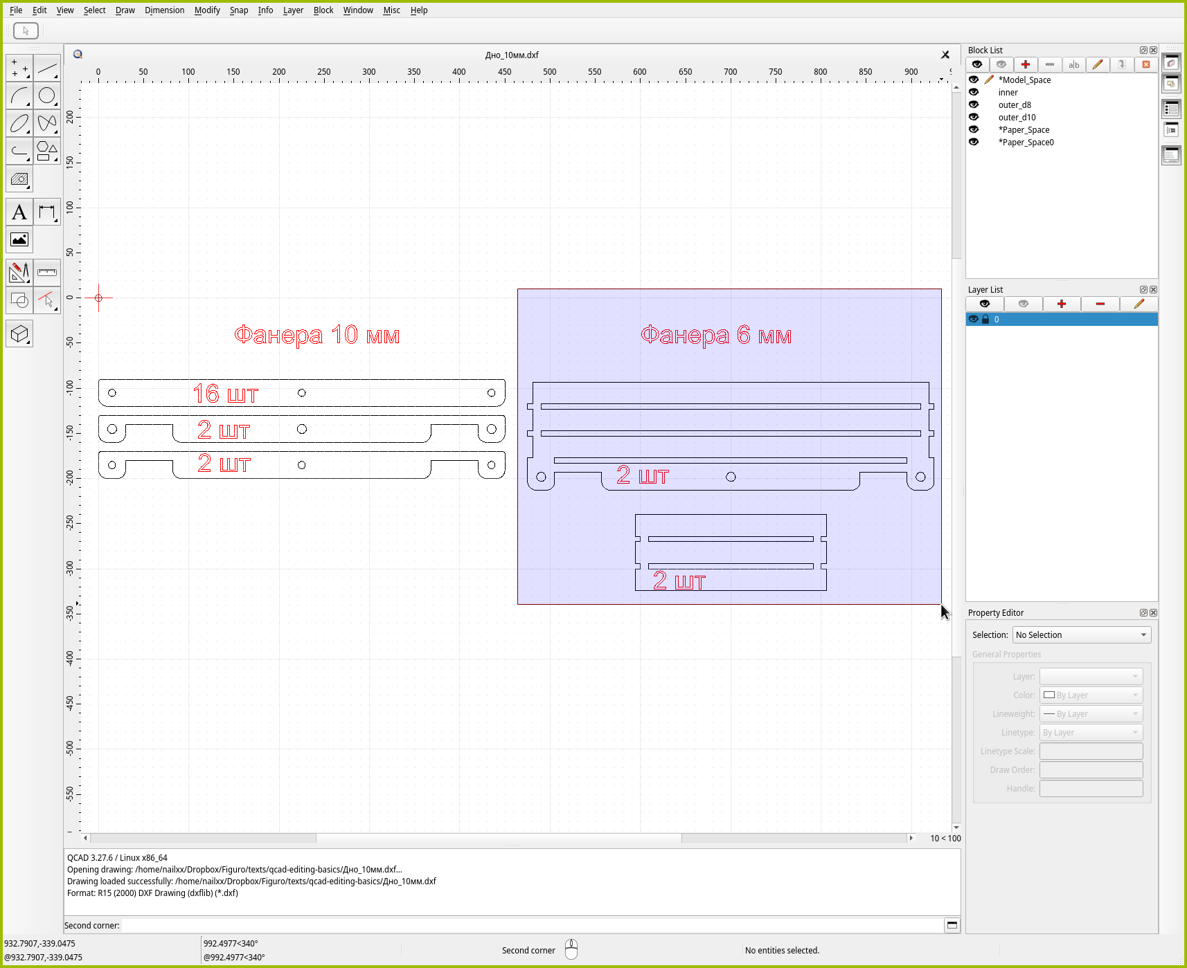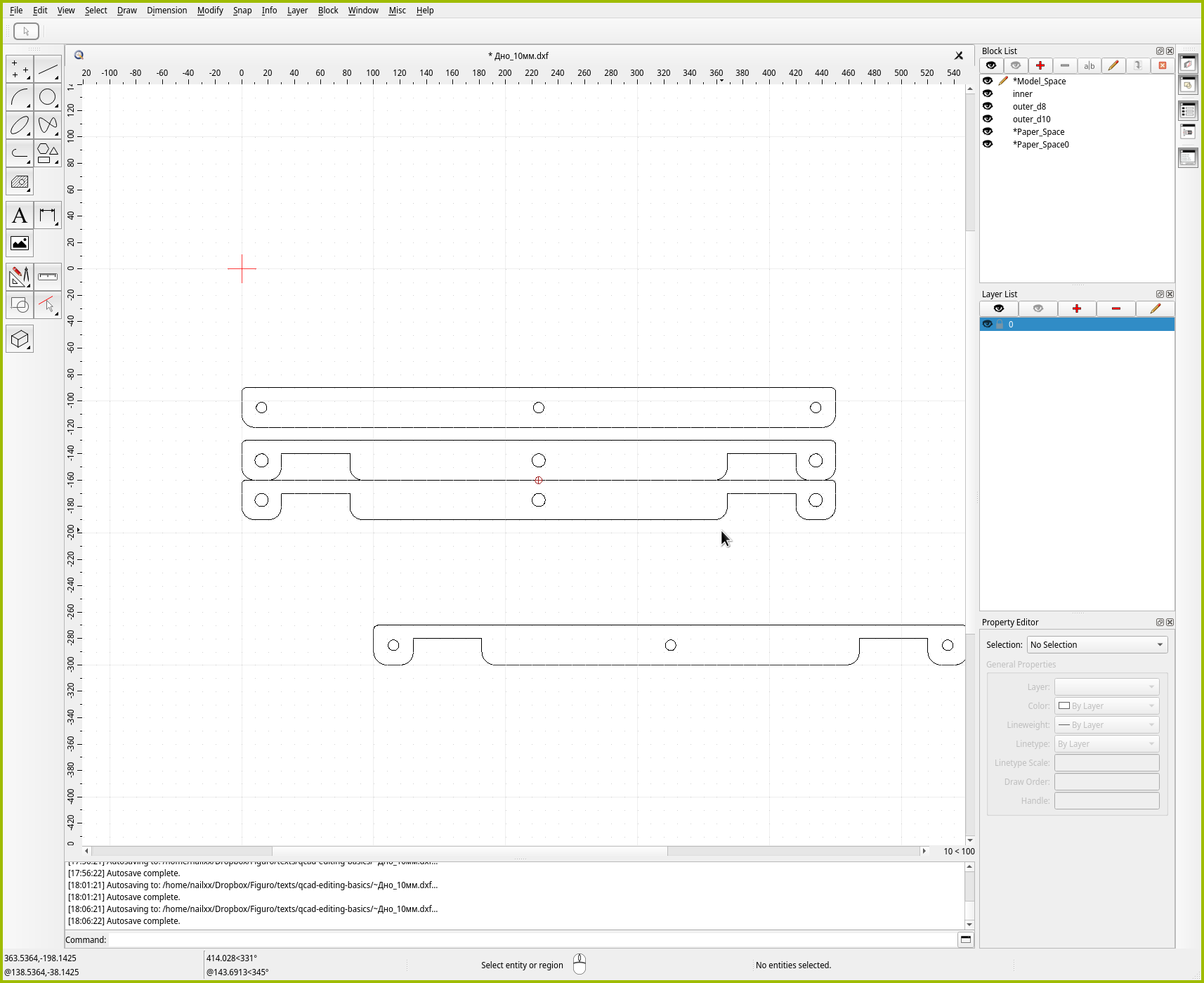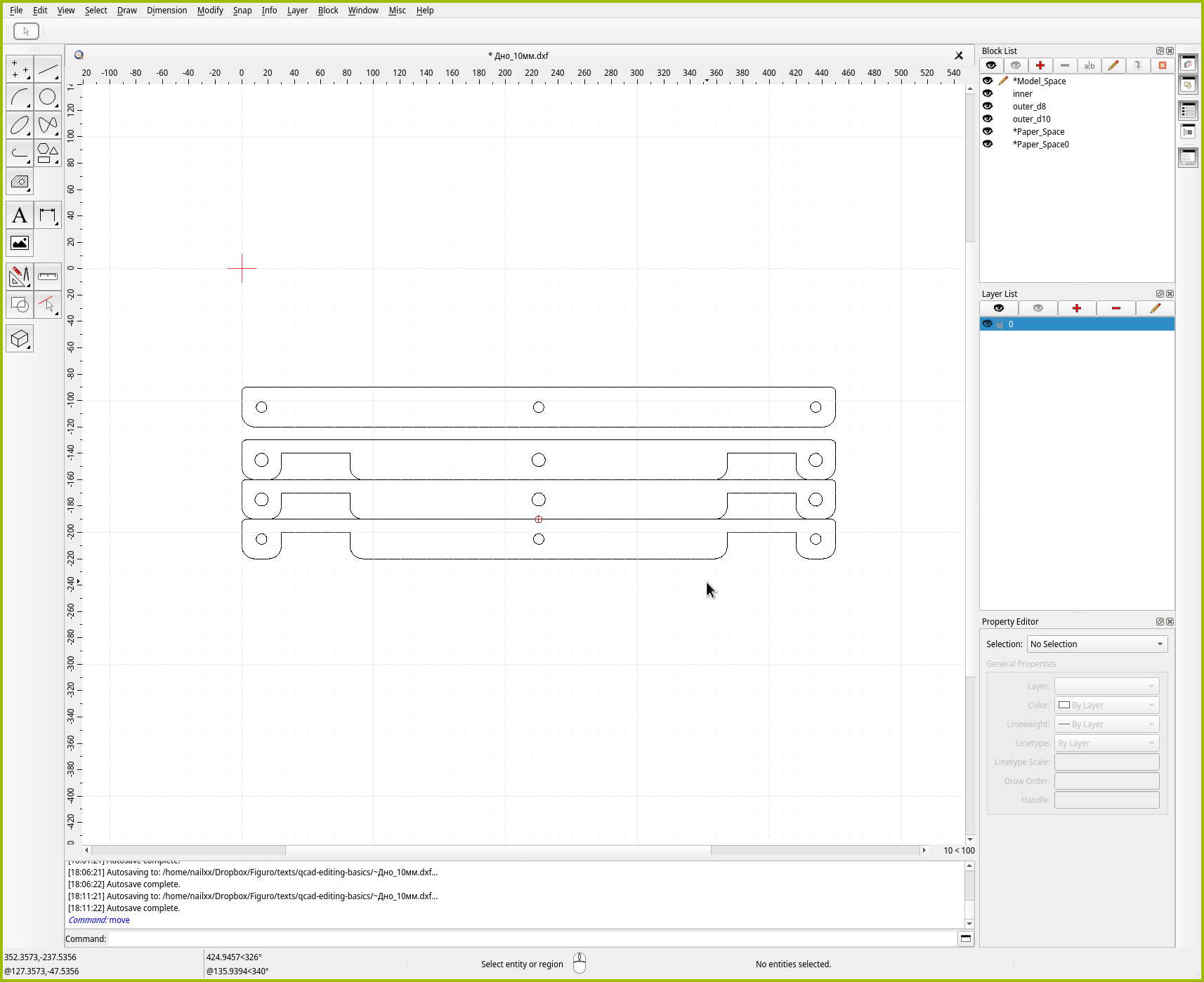 Но даже выделение рамкой в QCAD имеет свои фишки! И если их знать, работа пойдёт быстрее и проще.